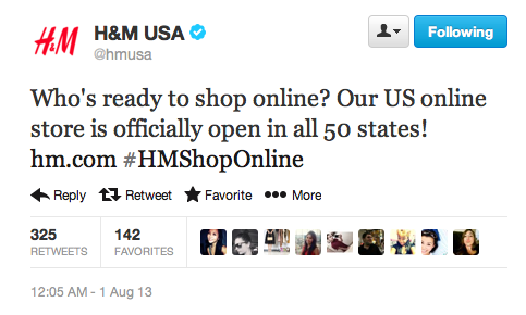 At midnight tonight (EST), H&M announced via Twitter that their online store front was open for business: