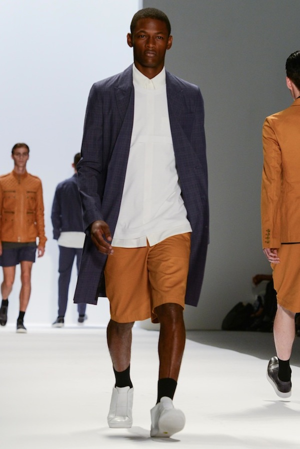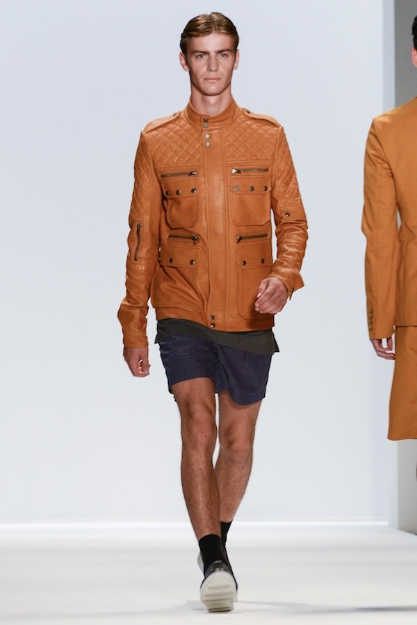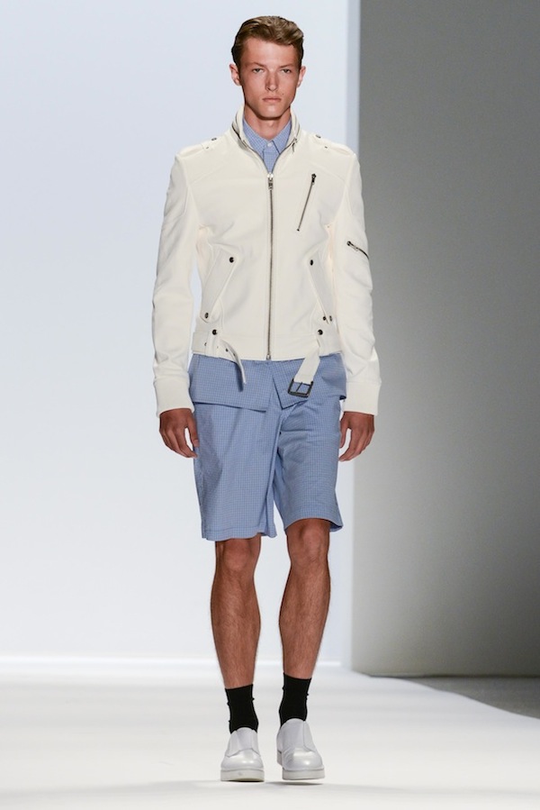 One of the first big shows to start New York Fashion Week at the Lincoln Center’s tents, Richard Chai‘s Spring/Summer 2014 collection. The show marked the debut of a collaboration between Chai and the leather goods brand, Andrew Marc, on a range of leather jackets and shoes.