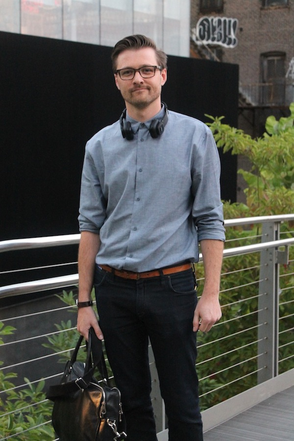 In this week’s edition of OUT On The Street, I found a casually dressed Londoner named Pete Williams, who’s a Digital Creative Director in the advertising and experiential industries. Spotted on The Highline on his way home from work, his button-down shirt with a color block scheme on the elbow caught my eye. See the details of the look on Out.com, and check out more street style on Vee Travels.