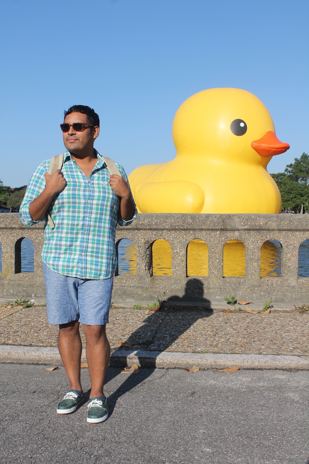 Even though we have a few weeks until summer officially starts, it always feels like the season starts as soon as June hits. You can’t go wrong with a colorful plaid button down in summer, whether it’s just for a day out running errands or during a trip like this one in Norfolk during The Virginia Arts Festival (for which Dutch artist Florentijn Hofman’s Rubber Duck paid a visit) and the Virginia Beer Festival weekend. Pair the shirt with solid shorts that can either slightly match or contrast, and feel free to mix it up a little with patterned kicks like Tretorn’s Otto style featuring Australian designer Florence Broadhurst’s Japanese Fan print.
