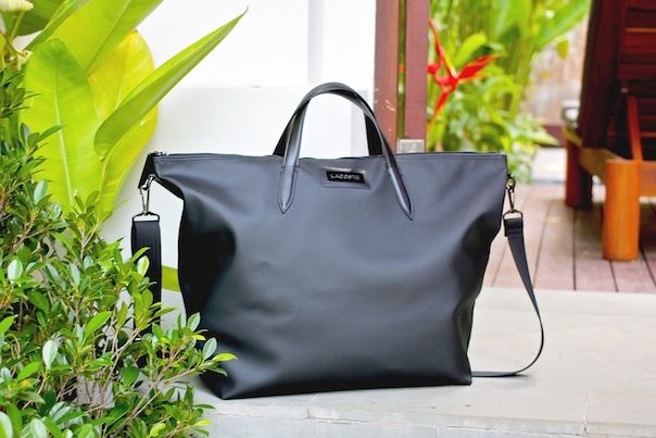 A trusty carry-on tote bag is a must have travel essential for year-round. Black is always a good color for its versatility, and the Lacoste L.13.12 Concept Voyage Travel Tote is a stylish choice.
