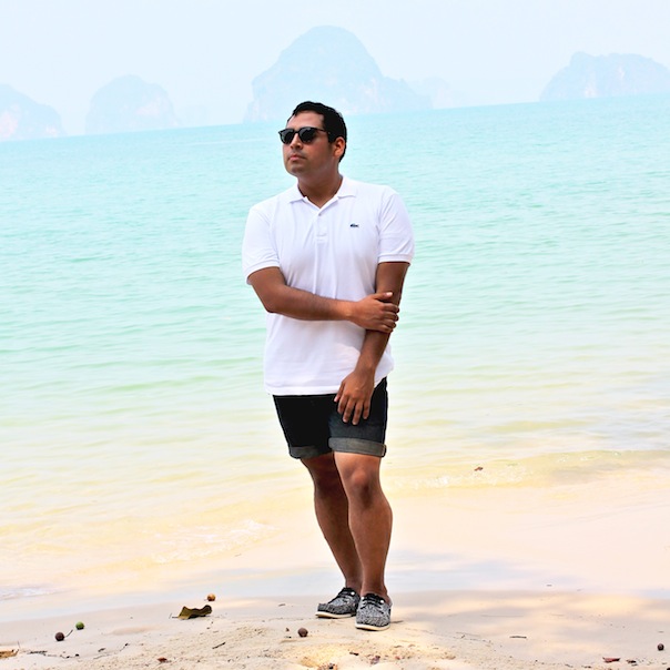 Staying at The Tubkaak Krabi Boutique Resort, a beautiful and secluded resort in Krabi with private villa and a picture perfect beach front, styles I brought that should be in a travel wardrobe for summer and tropical getaways are a pair of printed swim trunks, a solid polo shirt, torte sunglasses, denim shorts (pictured below) and bold boat shoes. They all came in handy together and separately, as they are able to be mixed and match with various tees, shirt styles, shorts and other wearables. Style credits: Lacoste tote, 2(X)ist swim shorts, TOMS sunglasses, Lacoste for J.Crew polo, and Band of Outsiders x Sperry Top-Sider boat shoes.