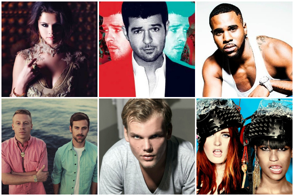 The rest of the pack includes the likes of Macklemore, Robin Thicke, Ellie Goulding, Calvin Harris, Jason Derulo, Miley Cyrus, and Avicii’s freshest hit, “Wake Me Up”.